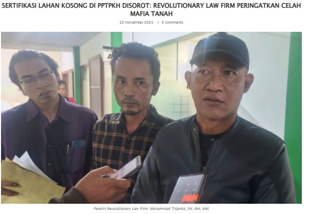 Pendiri Revolutionary Law Firm, Mohammad Trijanto, SH, MH, MM, yang hadir dalam mediasi, menegaskan bahwa temuan tersebut harus menjadi perhatian serius pemerintah daerah dan aparat hukum. Menurut MoU 2022, sertifikasi PPTPKH hanya boleh diberikan pada lahan yang benar-benar dikuasai dan dimanfaatkan masyarakat.